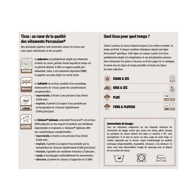 La gamme Percussion offre aux chasseurs des vêtements très élégants.