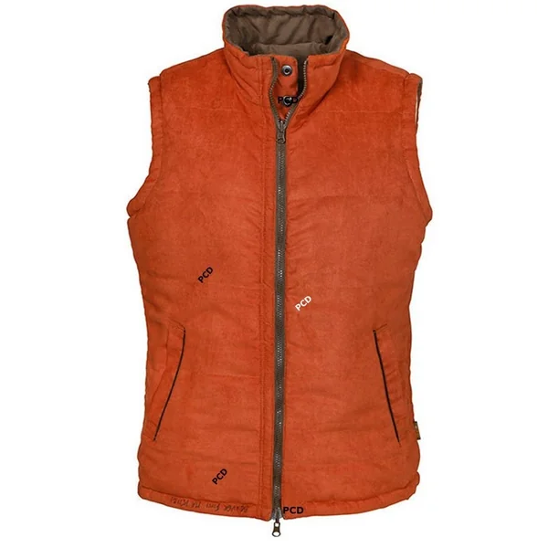 Gilet matelassé réversible en tissu suédine marron /orange brûlé, détails en imitation cuir
