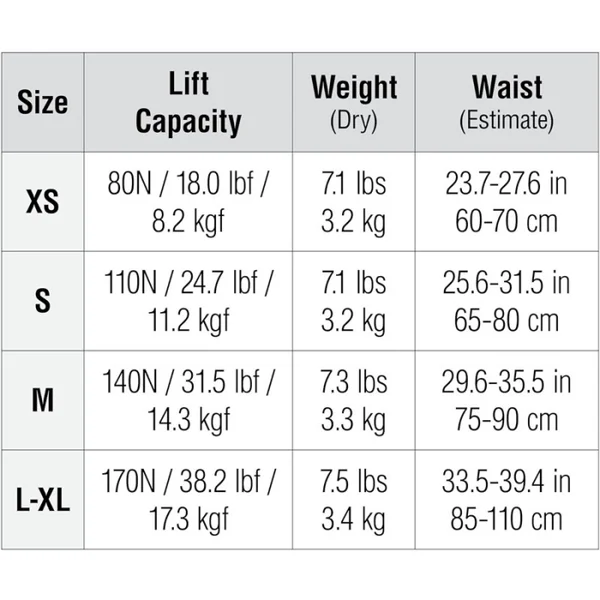 L-XL : 17,3 kg (38,2 lbf)