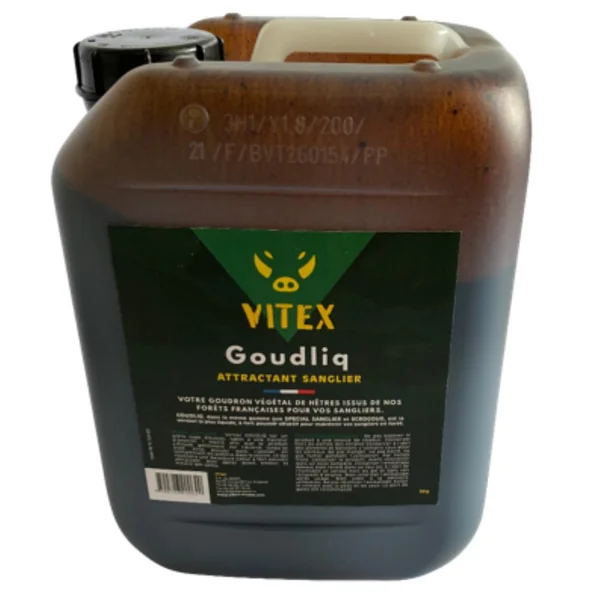 L’attractant Goudliq de Vitex est un goudron végétal issu des hêtres de nos forêts françaises. Goudliq vous assure un très fort pouvoir olfactif afin de maintenir les sangliers là où vous le souhaitez.