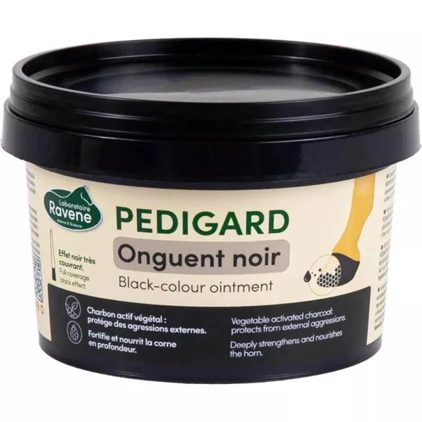 L’onguent noir Pédiguard de Ravene est idéal pour entretenir et protéger les sabots de votre cheval, en les rendant plus résistants tout en maintenant leur flexibilité et leur santé. Pour protéger et nourrir la paroi du sabot, cette enveloppe protectrice joue un rôle essentiel dans le maintien de la santé du pied du cheval. Aide à fortifier la corne tout en préservant son élasticité, essentiel pour la mobilité et la résistance du sabot. Charbon actif végétal : Protège les sabots des agressions extérieures tout en assurant un effet purifiant. Huile de laurier et cire d’abeille : Ces ingrédients contribuent à nourrir, hydrater et protéger le sabot, offrant une barrière contre l’humidité tout en facilitant la souplesse de la corne. Sans graisses animales : La composition est respectueuse de l’éthique et convient aux chevaux ayant des sensibilités.