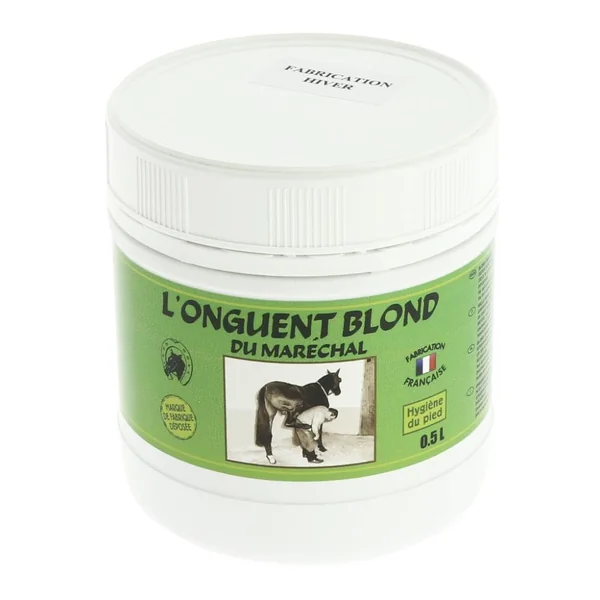 La graisse à sabot blond du Maréchal est un soin naturel spécialement formulé pour nourrir, hydrater et fortifier les sabots des chevaux en périodes sèches, afin de préserver leur souplesse et leur santé. Hydrate intensément les sabots secs, grâce à sa formulation nourrissante riche en graisse animale. Fortifie la corne pour prévenir le dessèchement, les seimes et les encastelures. Redonne de la souplesse à la corne, ce qui aide à éviter les fissures liées au climat sec. Formulé avec des ingrédients traditionnels comme l’huile de foie de morue et l’huile de laurier pure..