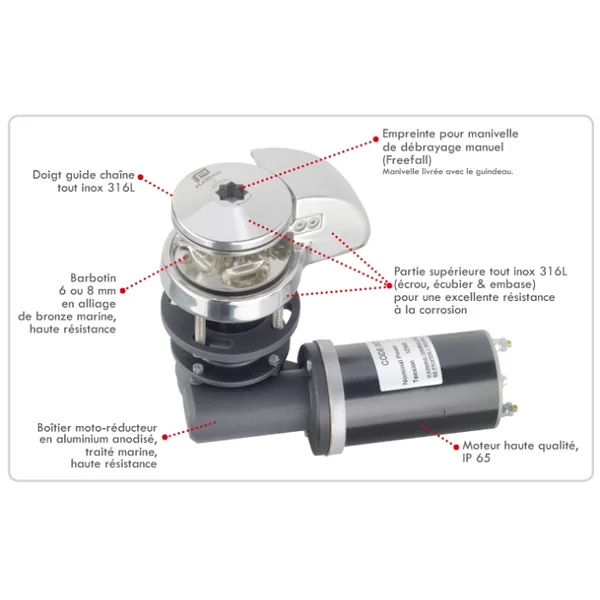 et d’un capteur de série pour compteur de chaîne. Caractéristiques Guindeau électrique vertical Plastimo