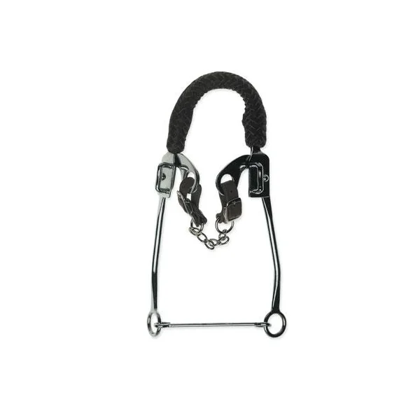 L’hackamore a un effet de levier plus ou moins fort selon la longueur des branches. Il agit directement sur le chanfrein du cheval, son action doit être modéré.