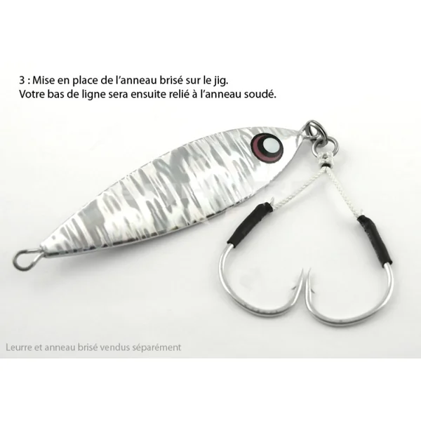 Notre Twin Assist SW 601 Ti est monté avec de la tresse japonaise haut de gamme YGK Galis Ultra Knot et un anneau soudé inox renforcé. La tresse est en Kevlar ce qui lui donne une solidité accrue aux coupures et à l’abrasion. Le Kevlar lui donne également un peu plus rigidité que le polyéthylène ce qui convient parfaitement au montage des hameçons « assist ».