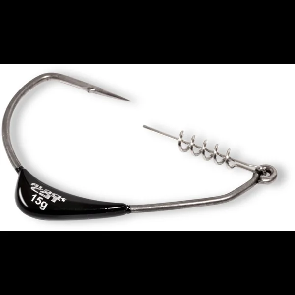 Hameçon Texan Black Cat Mega offset hook DG – 12/0 15gr L’hameçon Black Cat Mega Offset est parfait pour la pêche au leurre souple dans les endroits encombrés et la végétation, la pointe de l’hameçon se trouvant dans le leurre, évitant ainsi tout accrochage. L’œillet est pourvu d’une fixation à spirale extra-longue (shad screw), cette spirale maintien même les leurres les plus lourds et évite de les déchirer ou de les perdre lors du lancer. L’hameçon est de taille 12/0 et disponible en 3 grammages 10-15 et 20gr. Le positionnement de la masse sur la hampe de l’hameçon agit comme un gouvernail, procurant beaucoup de stabilité à la nage. Par ailleurs un arrêt net de l’animation ne fait pas simplement tomber le leurre à pic, tête en première, mais fait tournoyer ce dernier, déclenchant souvent la touche. Avis Hameçon Texan Black Cat Mega offset hook DG – 12/0 15gr Écrivez votre avis