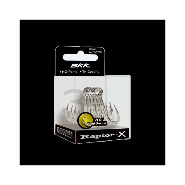 L’hameçon triple Raptor X est un hameçon de la marque BKK dont le design s’inspire de l’un des meilleurs hameçons triples jamais lancés par BKK : le Raptor-Z. La Raptor X bénéficie d’une ouverture d’hameçon large et robuste pour doter cet hameçon d’une excellente puissance et résistance lors de la traction. La pointe de l’hameçon est légèrement redressée pour améliorer les ferrages à chaque touche. Ce piquant est renforcé grâce à la finesse de la pointe due au traitement Hand-Ground