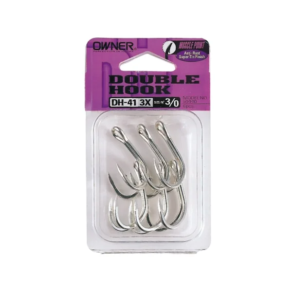 Hameçons Double Owner DH41 – n°2/0 x6pcs Owner est le leader des hameçons dans le monde. Ce prodigieux succès est dû au travail de chaque personne chez OWNER, mais aussi des ingénieurs qui mettent au point des procédés pour améliorer, jours après jours, la forme, le piquant, la résistance, le packaging des hameçons.