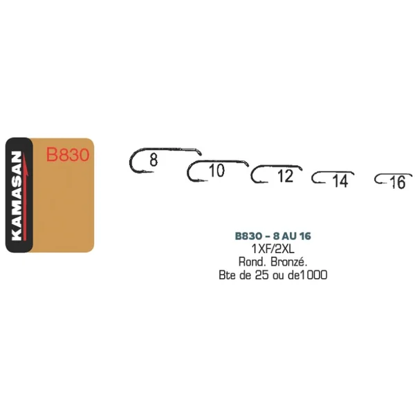 Hameçons KAMASAN B830 – Boite de 25 – H8 1XF/2XL