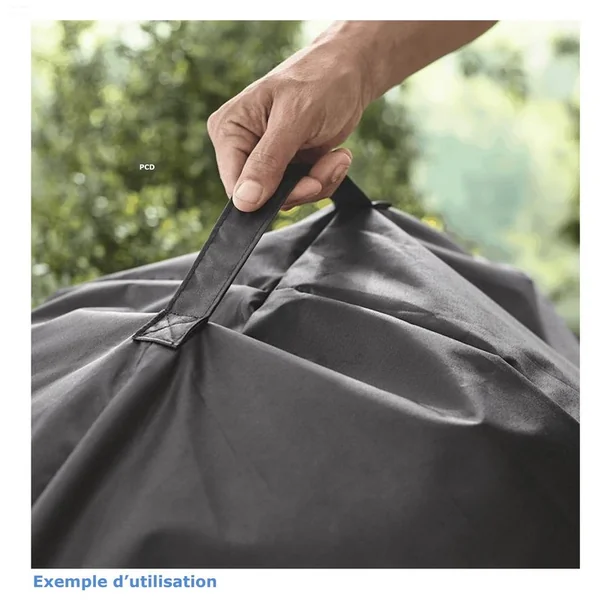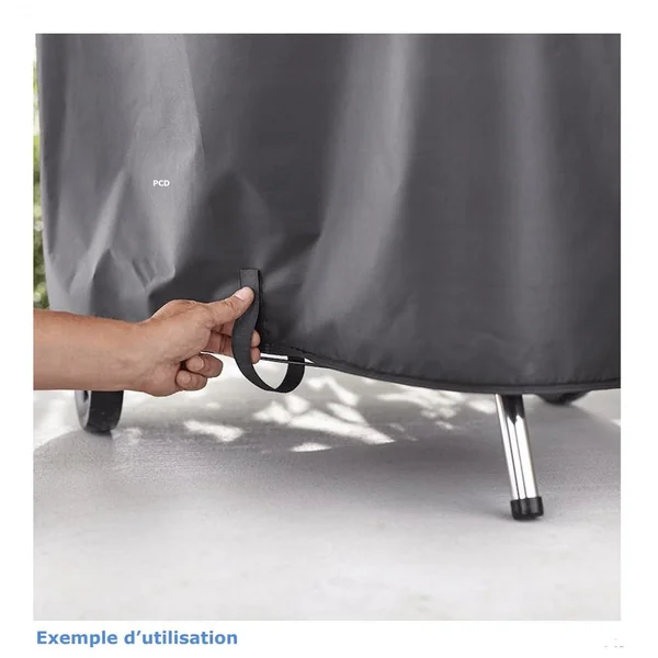 Cette housse de haute qualité est équipée de sangles de fixation pour éviter qu’elle s’envole.