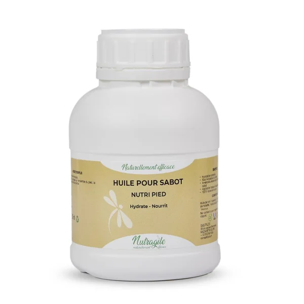 L’huile pour sabot Nutri Pied de Nutragile est un soin naturel haut de gamme, conçu pour maintenir la santé et la vitalité des sabots des chevaux. Formulée à partir d’un mélange synergique de six huiles végétales pures, cette huile offre une hydratation profonde, nourrit la corne et améliore la souplesse du sabot, tout en renforçant sa résistance face aux agressions extérieures. Hydratation et nutrition : Grâce à sa composition riche, l’huile pénètre rapidement et en profondeur pour hydrater et nourrir efficacement la corne du sabot. Assouplissement et protection : Elle assouplit la corne, la rendant plus flexible, et forme une barrière protectrice contre les agressions extérieures telles que l’humidité, la sécheresse ou les sols abrasifs. Renforcement de la structure du sabot : L’application régulière de cette huile contribue à renforcer la structure du sabot, réduisant ainsi les risques de fissures ou de dégradation prématurée. Application facile : Sa texture fluide permet une application aisée, même en hiver, sans risque de solidification. Incolore et non gras : L’huile est incolore et ne laisse pas de film gras, préservant ainsi l’apparence naturelle du sabot et ne salissant pas les équipements ou les sols. Respect de l’environnement : Sans pinceau intégré, le flacon est plus écologique et économique, permettant une utilisation personnalisée selon les besoins. Convient à toutes les saisons : Adaptée à une utilisation tout au long de l’année, elle protège les sabots des variations climatiques et des conditions de terrain changeantes. Conditions d’utilisation : Nettoyer et sécher le sabot.