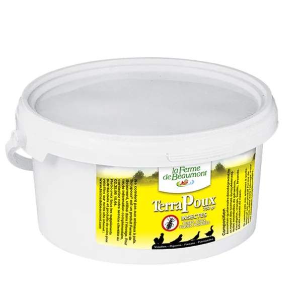 Poudre insecticide très efficace contre les insectes rampants tels que poux rouges, puces, tiques, punaises de lit, blattes, poissons d’argent. Utilisable aussi bien pour protéger les volailles que les animaux domestiques ou traiter la maison. Conseils d’utilisation : Saupoudrer à sec sur les zones à traiter, les plantes et les animaux (30-40 g/m²). Il est également possible de diluer le produit dans de l’eau (1 cuillère à soupe/litre) et de pulvériser sur toute la zone. Peut être utilisé en association avec d’autres traitements. Renouveler l’application 1 à 2 fois à une semaine d’intervalle si besoin.