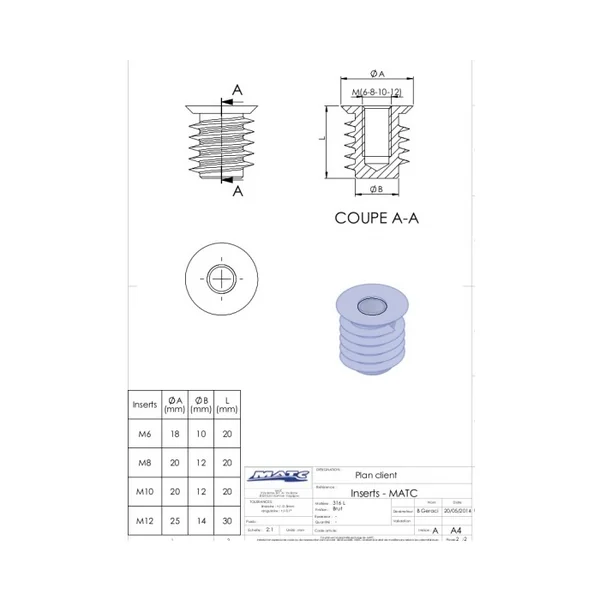 Pour fixation sur des surfaces en bois ou en matériaux composite d’une épaisseur minimum de 15 mm Avis Insert étanche inox MATC – Diamètre 12 Écrivez votre avis