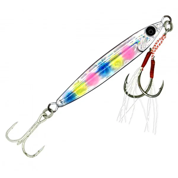 C’est un leurre qui a été conçu pour se lancer à grande distance en ciblant des espèces focalisées sur des proies de petite taille ce qui en fait un jig très efficace sur chasses.