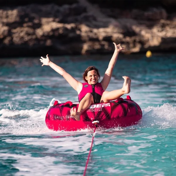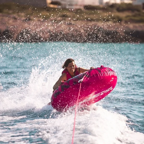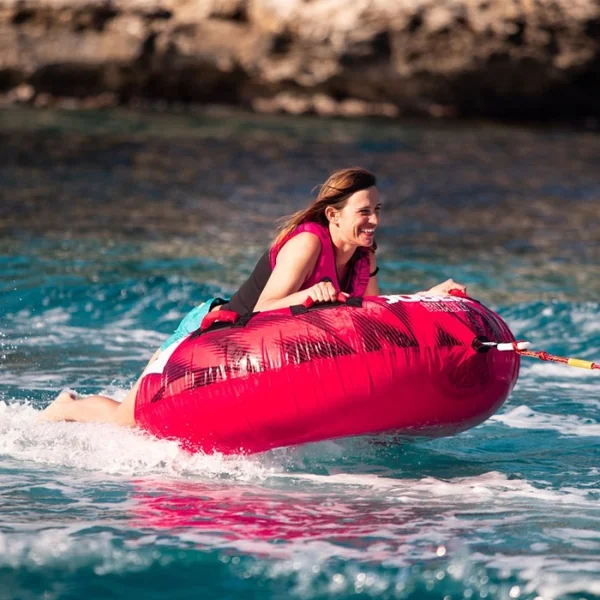 Les bouées tractées rondes comme la Rumble sont un classique de la pratique. Vous pouvez l’utiliser de deux manières : allongé ou assis. Ce qui procure soit des sensations fortes et de l’adrénaline, soit du fun tout en étant rassuré.