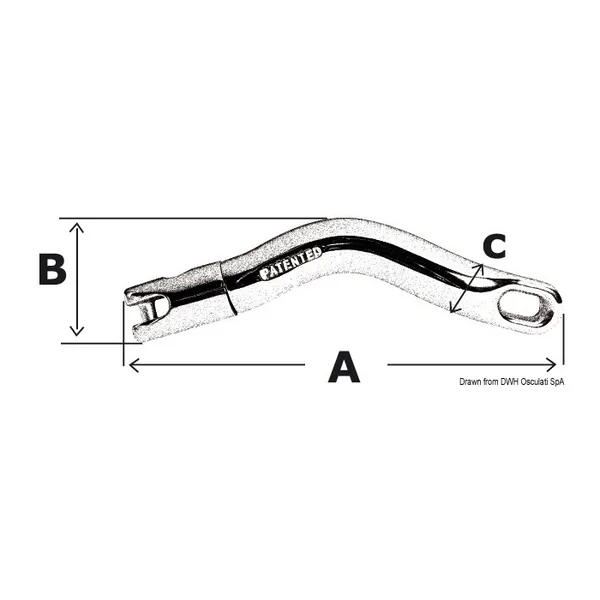 Dimensions : A 220 mm / B 60 mm / C 28 mm Avis Jonction Twist Osculati chaîne Ø 6/8 mm Écrivez votre avis
