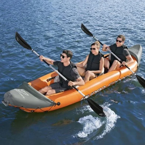 Le kayak gonflable 2 places Hydro Force Lite Rapid de chez Best way est équipé de 2 jupes (à l’avant et à l’arrière) permettant de glisser vos affaires (vêtements, pique-nique…) pour les conserver à l’abri des projections d’eau.