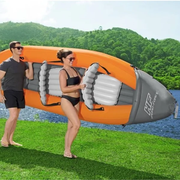 Le kayak gonflable Lite-Rapid Hydro force est équipé d’une poignée à l’avant et d’une poignée à l’arrière, permettant de le soulever et de le transporter.
