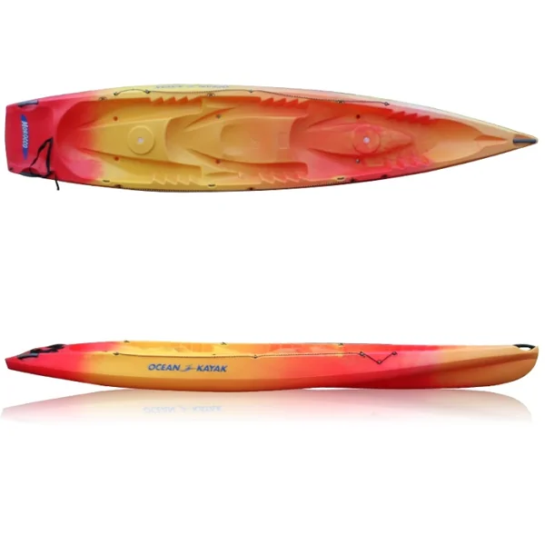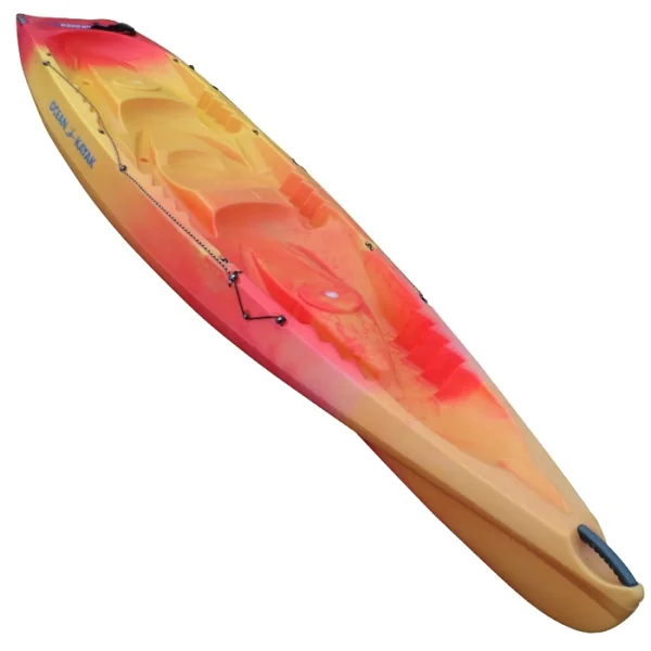 Sa forme arrière avec un large plan incliné permet de remonter facilement sur le kayak et de se faire traîner pendant que les copains pagaient, les enfants apprécieront ! Ce kayak offre aussi beaucoup d’espace pour les grands gabarits. Il sera moins rapide qu’un modèle avec une carène « quillée » mais il ne roulera pas du tout et la stabilité est son atout principal. Il est également homologué mer pour la rando d’îles en îles à 2 ou 3 personnes ou la pêche en mer, à la ligne ou en chasse sous marine –