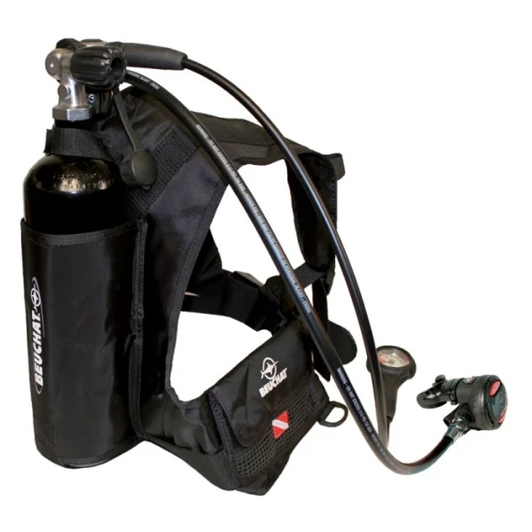 Il se compose d’un harnais en toile ajustable, d’une bouteille de 2 litres, d’un détendeur à deux étages, et d’un manomètre de contrôle, permettant des interventions en surface et à faible profondeur.