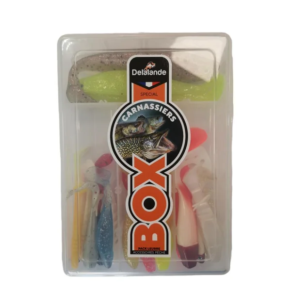 Le kit carnassiers Delalande vous permettra d’avoir une boite de leurres souples pour traquer perches, sandres ou brochets avec les têtes plombées adaptées. La boite plastique fournie est réutilisable, et se range dans un chest pack ou un carryall.