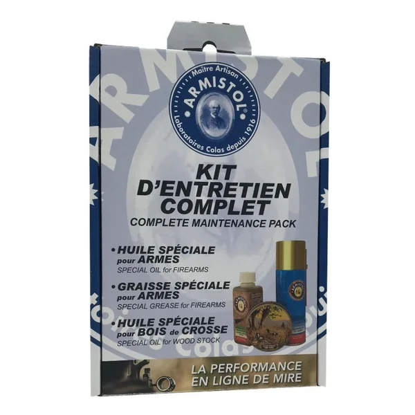 Le kit complet entretien Armistol est une solution simple et complète pour assurer l’entretien courant de vos armes de chasse et de tir. Pratique à utiliser, il réunit l’essentiel pour conserver un équipement propre, soigné et prêt à l’emploi. Ce pack comprend 3 produits complémentaires : une huile Armistol en aérosol 200 ml, une graisse Armoline en boîte 50 ml et une huile bois de crosse en flacon 120 ml. Il convient à l’entretien des armes de chasse, armes de tir, armes anciennes et armes de collection.