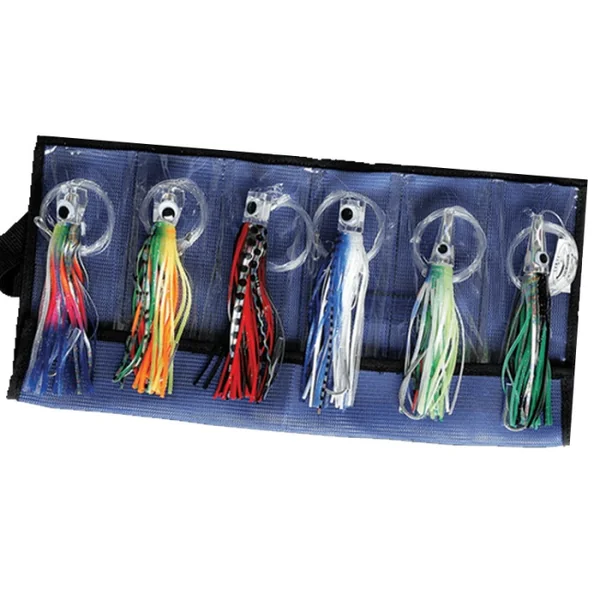 Montés avec des ressorts à appâts, ces leurres sont prêts à pêcher avec leur Ballyhoo ou leurs lanières d’appât.