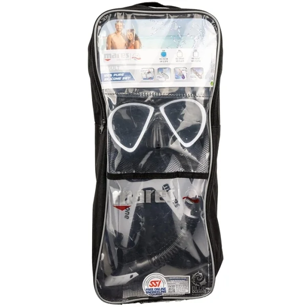 Le masque Marea, inclus dans ce set, est équipé d’une pièce faciale en silicone souple qui assure un port prolongé confortable. Il est doté de nervures autour du nez pour réduire la pression, ce qui rend la plongée encore plus agréable.