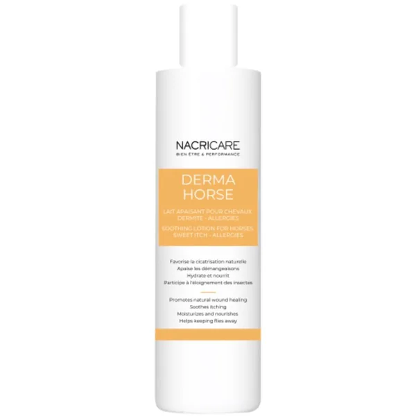 Derma horse- Dermite Estivale est un lait à base d’ingrédients naturels spécialement conçu pour répondre aux problèmes de dermite estivale (DERE) et d’allergies cutanées chez le cheval. des démangeaisons suite aux piqures de culicoïdes (dermite), des réactions cutanées aux piqures d’insectes (moustiques, taons, mouches,…), des réactions cutanées à un changement de litière, de paille ou de foin, en cas de démangeaisons de manière générale. Propriétés du Derma Horse – Dermite Estivale : Favorise la cicatrisation naturelle
