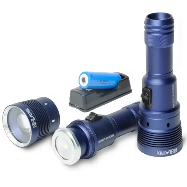 La Super Bellatrix de Best Divers est une lampe de plongée rechargeable ultra-polyvalente, offrant trois modes d’éclairage différents dans un seul appareil. Conçue pour répondre aux besoins des plongeurs de nuit, des explorateurs d’épaves et des vidéastes sous-marins, elle combine puissance, polyvalence, robustesse et simplicité d’utilisation.