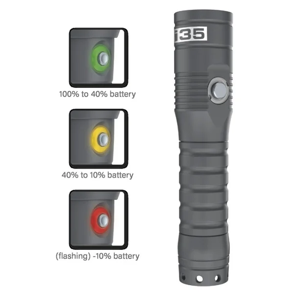 Construite en aluminium anodisé, la torche SEAC i35 résiste aux chocs, à la corrosion et aux conditions extrêmes.