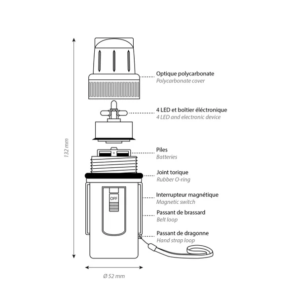 Livrée avec dragonne de sécurité et sangle brassard Caractéristiques Lampe flash flottante Plastimo 4 LED