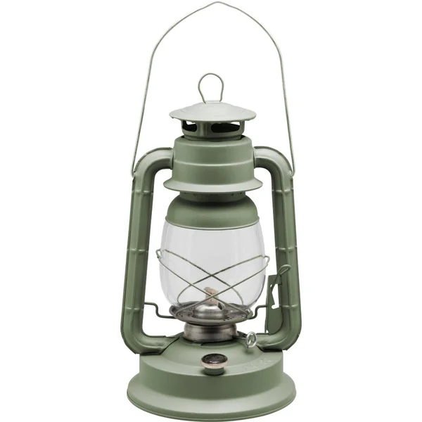 Composition : aluminium. Hauteur : 35 cm. Bouchon de sécurité. Lampe à huile avec mèche. Huiles recommandées : références 1175180 ou 1175181. Mêche recommandée : 20 mm (référence : 1175121). Autonomie : 25h. Capacité : 770 ml. Coloris : kaki. Poids : 680 grs.