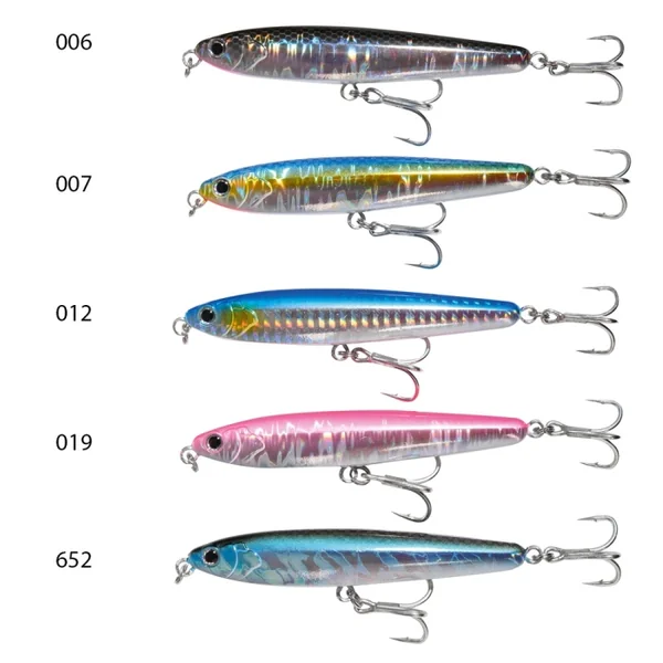Petit stick-bait au corps effilé. Ses grands contrepoids internes et son design aérodynamique permettent de le lancer loin. Sa nage walking rapide et erratique entre deux eaux est capable de réveiller et d’attirer le plus inactif des prédateurs. Bars, chinchards et petits thonidés ne pourront pas résister à son charme.