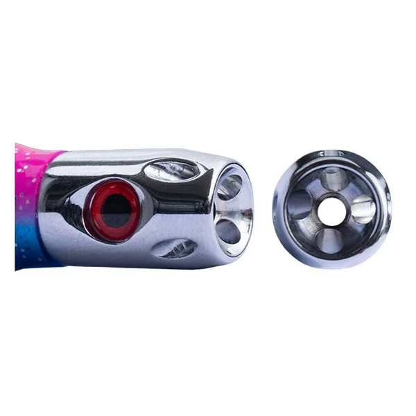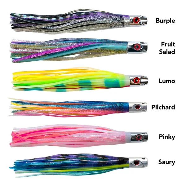 La traînée de bulles et les vibrations sonores générées par les jets, associées aux doubles jupes en vinyle disponibles en 6 couleurs vives, attirent les prédateurs de loin – skippies, germons, carangues, Mahi Mahi, Kahawai et albacores.