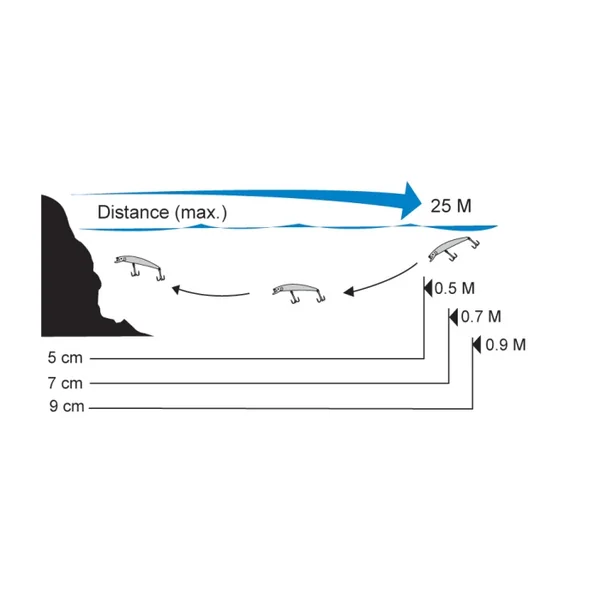 Le PIN’S MER est équipé de bille internes en acier, qui permettent de propulser le leurre à longue distance. Le mouvement de balancier provoqué par les billes donne une nage dodelinante au modèle 70 mm qui rappelle tout à fait la nage d’un poisson affaibli.
