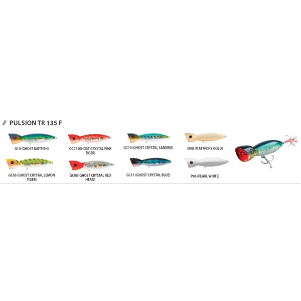 Leurre Poppers Sakura Pulsion TR 135 F 55 gr Au fil des ans, le Pulsion TR s’est imposé comme une référence en matière de leurre de surface pour les pêches exotiques légères et moyennes !