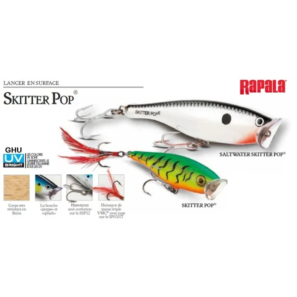 Disponible avec 5 coloris Caractéristiques Leurre Rapala Skitter Pop 5 cm 6 gr
