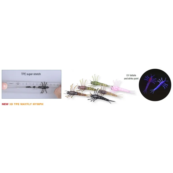 Leurre Savage Gear insecte Nymphe 5 cm 2,5 gr La 3D TPE Mayfly Nymph est basée sur un scan d’une vraie nymphe d’éphémère, avec des détails incroyables malgré sa petite taille.