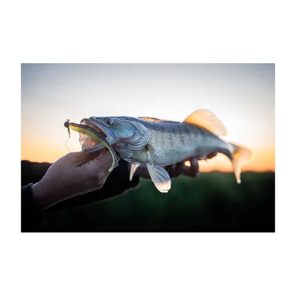 La texture du leurre joue un rôle crucial. Fabriqué en matériau SuperSoft, ce shad est à la fois souple et résistant. Sa grande flexibilité lui permet de se replier (plier) instantanément dans la bouche du poisson lors de l’aspiration. Résultat : le carnassier garde le leurre plus longtemps en bouche et vos ferrages sont nettement plus efficaces.