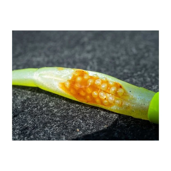 Ce n’est pas un simple leurre plastique : le Scent Shad est infusé à cœur avec l’attractant éprouvé Fish Snax. Pour aller encore plus loin, il dispose de picots (nervures) sous le ventre. Ces derniers ne servent pas uniquement à créer des micro-vibrations, ils offrent aussi une surface idéale pour retenir des gels ou pâtes attractants supplémentaires, vous permettant de personnaliser votre approche olfactive.