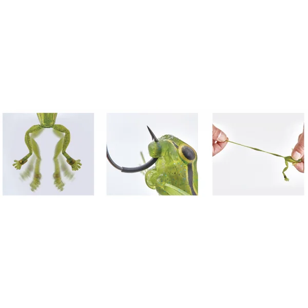 À l’avant, des appendices en caoutchouc assurent une parfaite stabilité : ils maintiennent la grenouille plaquée à la surface tout en lui donnant une nage naturelle, même lors d’animations lentes.
