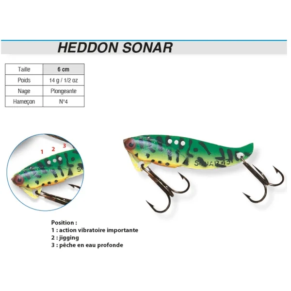 Hameçons N°4 Caractéristiques Leurres de pêche Heddon Sonar 6 cm
