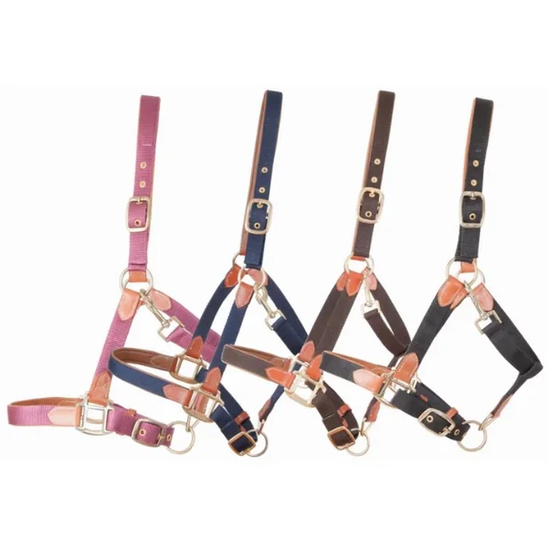 Le licol en cuir et sangle poney de T de T présente une douceur remarquable sur la muserolle et la têtière. Agrémenté d’un empiècement décoratif en cuir softy, il offre une esthétique soignée. Pour une praticité accrue, il est doté d’un mousqueton de pansage situé sous la gorge. La bouclerie couleur laiton ajoute une touche d’élégance supplémentaire. La longe est disponible séparément.