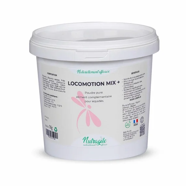 Le Locomotion Mix+ est un complément alimentaire en poudre conçu pour soutenir la santé articulaire des chevaux, poneys et poulains. Formulé à base de plantes pures et d’ingrédients naturels, il vise à améliorer la mobilité, réduire les inflammations et protéger les structures articulaires. Soulagement des douleurs articulaires : Grâce aux propriétés anti-inflammatoires des plantes et du MSM. Réduction des inflammations : Action combinée du boswellia, curcuma, gingembre et prêle. Soutien de la fragilité articulaire : Particulièrement utile en cas d’arthrose ou de tendinites. Protection des cartilages : Favorise la fixation du calcium et stimule la synthèse du cartilage. Facilité d’administration : Poudre facile à doser, fournie avec une dosette. Conditions d’utilisation : Poulains/Poneys : 15g/jour