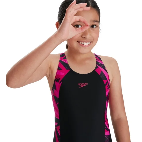 Maillot de bain Hyper Boom Splice Muscleback Speedo Black/Electric Pink/Ecstatic – Le Muslceback est idéal pour les longues séances de natation grâce à sa conception qui permet une amplitude de mouvement complète.