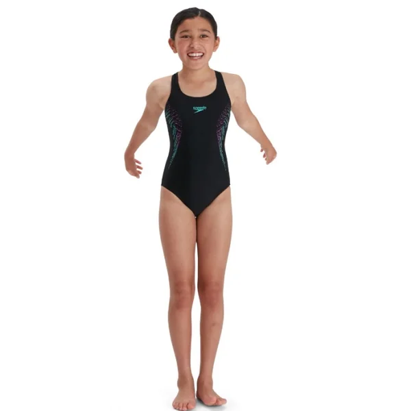 Maillot de bain Plastisol Placement Muscleback Speedo Black/Rose Violet/Bondi Blue – Le Muslceback est idéal pour les longues séances de natation grâce à sa conception qui permet une amplitude de mouvement complète.