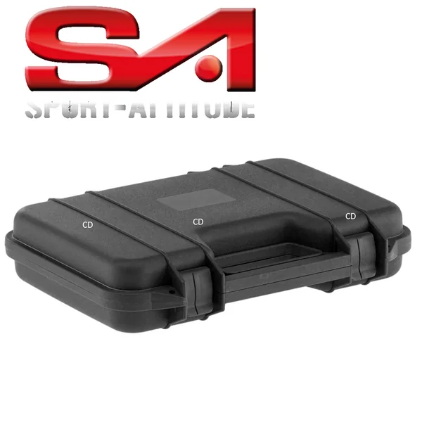 MALLETTE ANTI-CHOC NOIRE ARMES DE POING :Caractéristiques :-Mallette anti-choc pour arme de poing, de marque Sport Attitude.-Coque extérieure en polycarbonate.-Garniture en mousse alvéolées qui épouse et bloque les armes.-Poignée de transport largement dimensionnée.-Fermeture par 2 ou 4 clapets grande résistance.-2 points de fixations pour verrouillage par cadenas.*Dimensions :-Intérieures : 290 x 188 x 45mm.-Extérieures : 315 x 245 x 70mm.