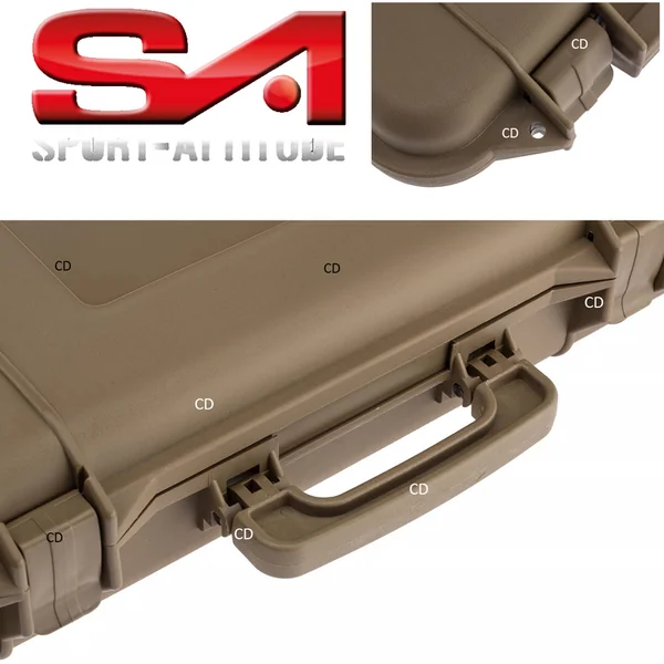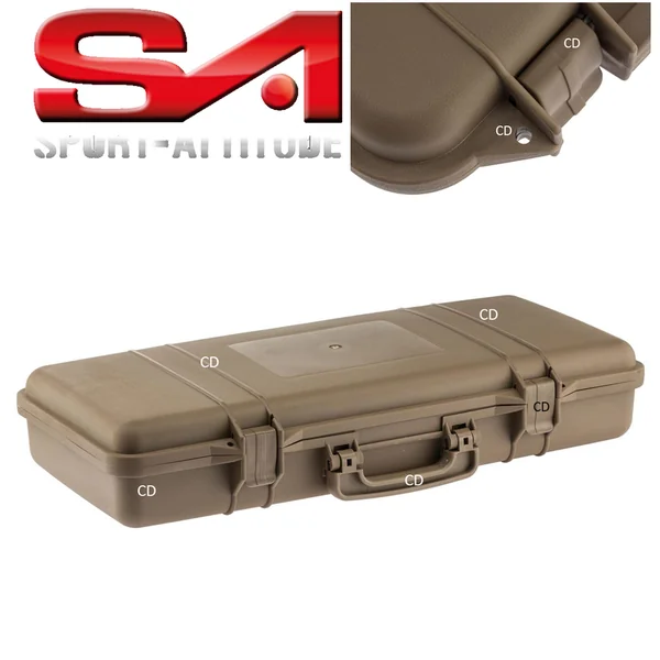 MALLETTE ANTI-CHOC TAN ARMES LONGUES DEMONTEES :Caractéristiques :-Mallette anti-choc pour arme de poing, de marque Sport Attitude.-Coque extérieure en polycarbonate.-Garniture en mousse alvéolées qui épouse et bloque les armes.-Poignée de transport largement dimensionnée.-Fermeture par 2 ou 4 clapets grande résistance.-2 points de fixations pour verrouillage par cadenas.*Dimensions :-Intérieures : 687 x 285 x 115mm.-Extérieures : 715 x 365 x 135mm.