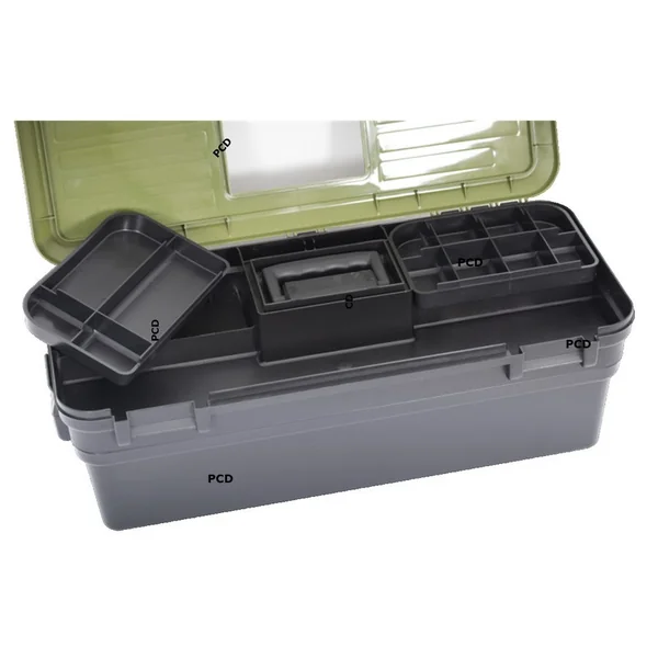 –Compartiment supérieur pouvant contenir des pièces détachées, huiles et silicones…. avec deux bacs latéraux amovibles pour contenir vos vis et accessoires lors du démontage de votre arme.